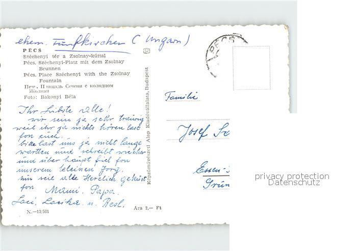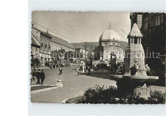 old postcard Pecs Szechenyl Platz Brunnen postalisch gelaufen Erhaltung siehe scans