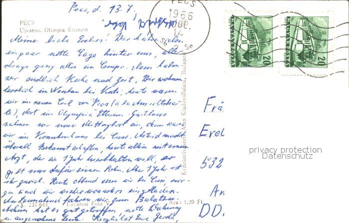 old postcard Pecs Ujvaros Olimpia Etterem postalisch gelaufen Erhaltung siehe scans