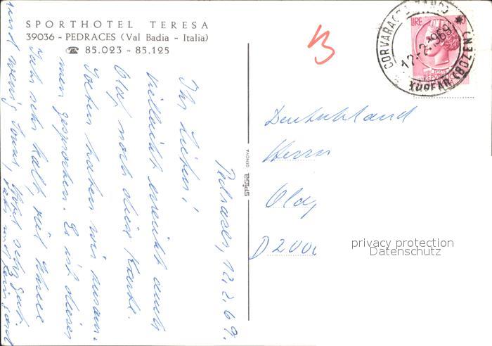old postcard Pedreaces Dolomiten Sporthotel Teresa postalisch gelaufen Erhaltung siehe scans
