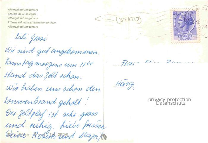 74035211 old postcard Pedrera Torre Pedrera Rimini IT Alberghi sul lungomare Spiaggia Tramonto del sole postalisch gelaufen Erhaltung siehe scans [FriedD77] KatCode: 11240