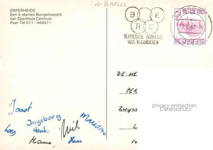 12909647 carte postale Peer Bungalowpark Erperheide postalisch gelaufen Erhaltung siehe scans [AndreD76] KatCode: 11070072008601