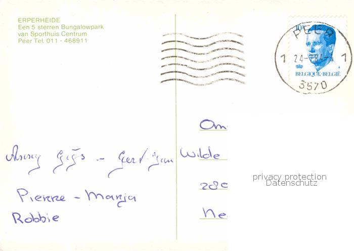 12880874 carte postale Peer Bungalowpark Erperheide postalisch gelaufen Erhaltung siehe scans [KathaD81] KatCode: 11070072008601