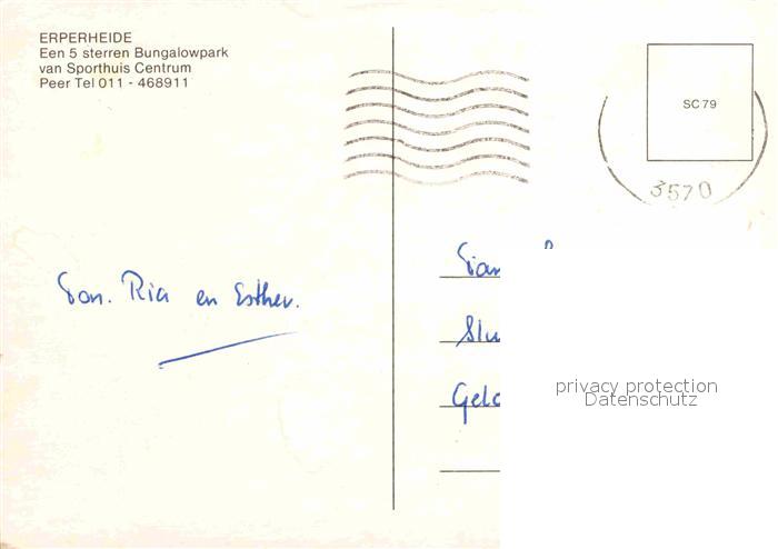 12871426 carte postale Peer Bungalowpark Erperheide postalisch gelaufen Erhaltung siehe scans [PaolaD17] KatCode: 11070072008601