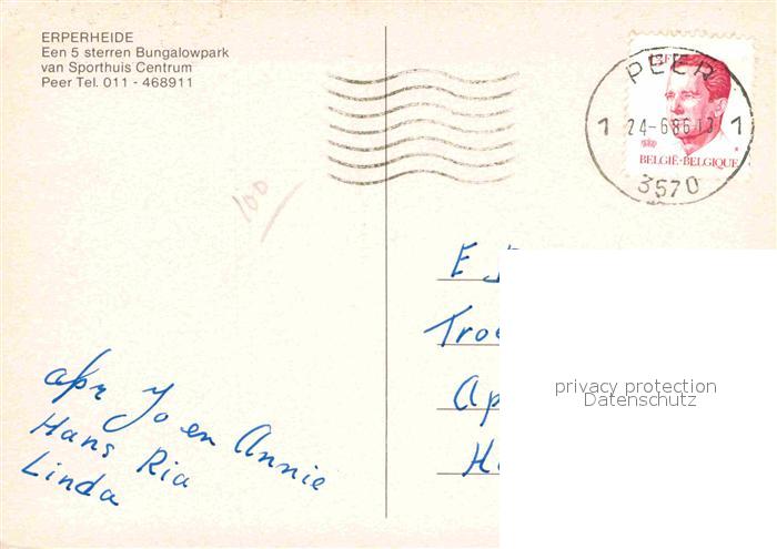 72865164 carte postale Peer Bungalowpark Erperheide Kegelbahn postalisch gelaufen Erhaltung siehe scans [LiesaD40] KatCode: 11070072008601