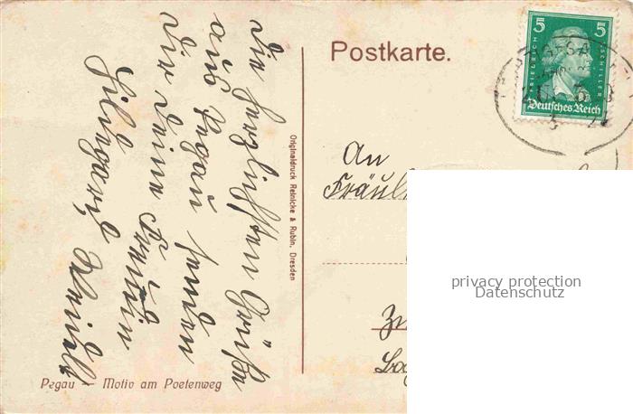 74151338 alte Postkarte Pegau Motiv am Poetenweg postalisch gelaufen Bahnpost Erhaltung siehe scans [FriedD77] KatCode: 11110014379580