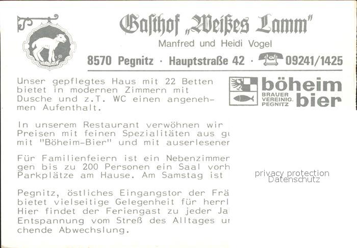 71831805 Pegnitz Gasthof Weisses Lamm postalisch nicht gelaufen Keine Postkarte (siehe scan) Erhaltung siehe scans KatCode: 11110009472175