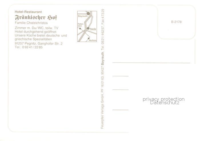 73863030 Pegnitz Hotel Restaurant Fraenkischer Hof postalisch nicht gelaufen Erhaltung siehe scans [FriedD77] KatCode: 11110009472175