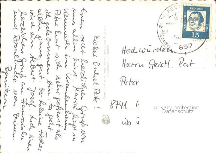 72182249 alte Postkarte Pegnitz Totalansicht Kirche Dorfmotive postalisch gelaufen Erhaltung siehe scans KatCode: 11110009472175