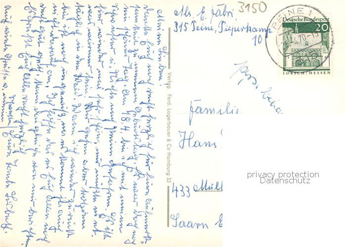 73869416 alte Postkarte Peine Kath Kirche Telgte Ev Kirche Strassenpartien Park Waldweg postalisch gelaufen Erhaltung siehe scans [WerneD78] KatCode: 11110003157006