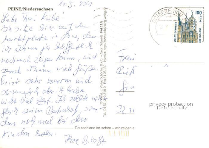 73774817 alte Postkarte Peine Stadtpark Markt Mittellandkanal Altes Rathaus Bahnhofstrasse Kiepenburg Schmedenstadthaus Breite Strasse postalisch gelaufen Erhaltung siehe scans [WerneD78] KatCode: 11110003157006