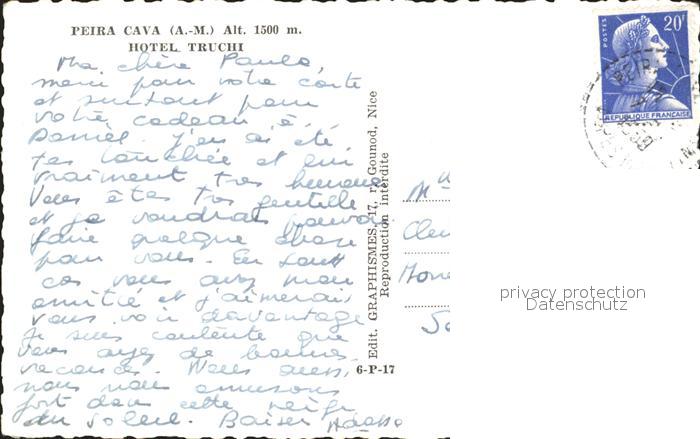 11981423 carte postale Peira-Cava Hotel Truchi postalisch gelaufen Erhaltung siehe scans KatCode: 11170006106069