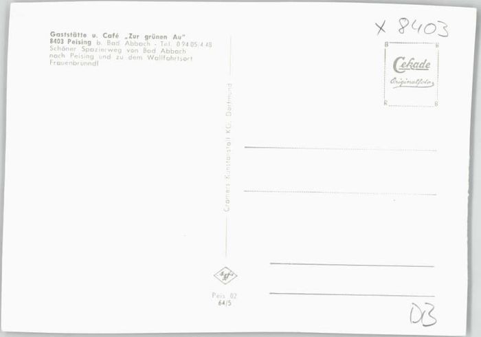 40223456 Peising Gaststätte Zur grünen Au ungelaufen ca. 1965 KatCode 11110009273116
