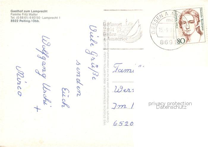 73268933 alte Postkarte Peiting Gasthof zum Lamprecht postalisch gelaufen Erhaltung siehe scans [FriedD77] KatCode: 11110009190140