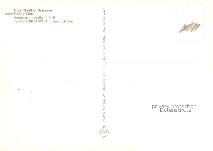 73835200 Peiting Hotel Gasthof Dragoner postalisch nicht gelaufen Erhaltung siehe scans [WerneD78] KatCode: 11110009190140