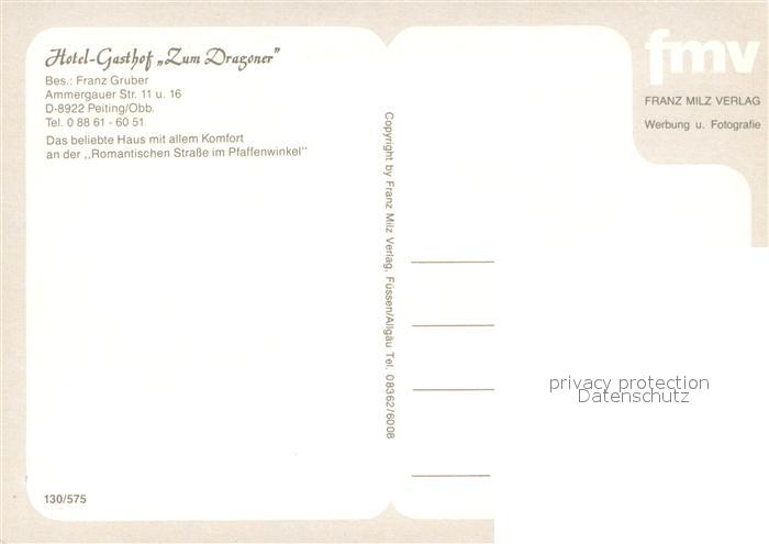 73662941 Peiting Hotel Gasthof Zum Dragoner postalisch nicht gelaufen Erhaltung siehe scans [FriedD77] KatCode: 11110009190140