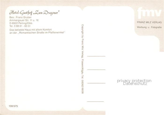 73845168 Peiting Hotel Gasthof Zum Dragoner postalisch nicht gelaufen Erhaltung siehe scans [WerneD78] KatCode: 11110009190140