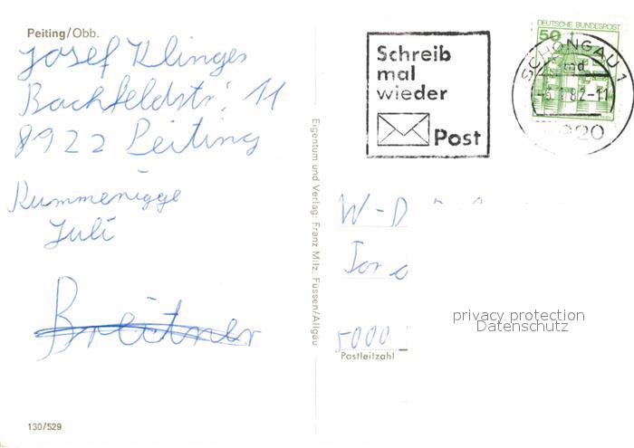 72765449 alte Postkarte Peiting postalisch gelaufen Erhaltung siehe scans [LiesaD40] KatCode: 11110009190140