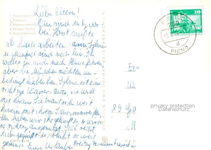 72968804 alte Postkarte Peitz Festungsturm Rathaus Hammerwerk Teiche Ambulatorium postalisch gelaufen Erhaltung siehe scans [FriedD77] KatCode: 11110012071304
