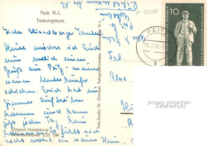 43351976 alte Postkarte Peitz Festungsturm postalisch gelaufen Erhaltung siehe scans [KathaD81] KatCode: 11110012071304
