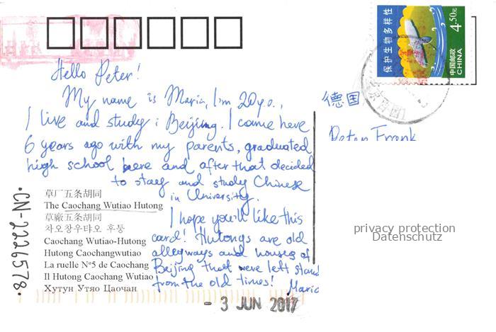 74085849 old postcard Peking Pekin Beijing China The Caochang Wutiao Huton postalisch gelaufen Erhaltung siehe scans [WerneD78] KatCode: 12030