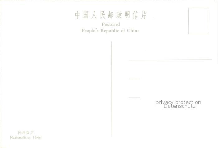 Peking Pekin Beijing Nationalities Hotel postalisch nicht gelaufen Erhaltung siehe scans