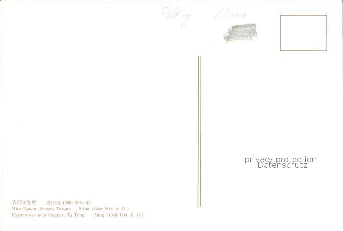 Peking Pekin Beijing Nine Dragon Screen Tatung Ming postalisch nicht gelaufen Erhaltung siehe scans [WerneD78]