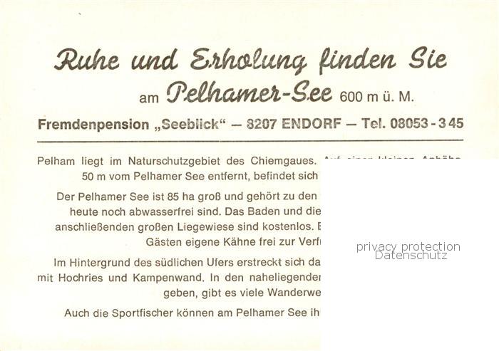 73781330 Pelham Oberbayern Pension Seeblick Panorama Pelhamer See Alpen postalisch nicht gelaufen Werbekarte (keine Postkarte) Erhaltung siehe scans [FriedD77] KatCode: 11110009187128