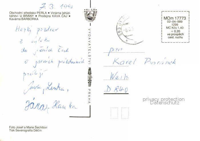 old postcard Pelhrimov Pilgram Obchodni stredisko Perla Vinarna lahudkarstvi U Brany Kava Caj Kavarna Barborka postalisch gelaufen Erhaltung siehe scans [WerneD78]