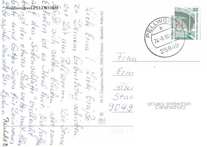 72899453 alte Postkarte Pellworm Deich Leuchtturm Kirche Windmuehle postalisch gelaufen Erhaltung siehe scans [AndreD76] KatCode: 11110001054103