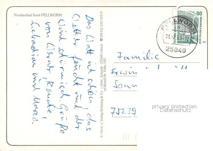 73670148 alte Postkarte Pellworm Windmuehle Fliegeraufnahme Leuchtturm Fischereihafen Friesenhaeuser postalisch gelaufen Erhaltung siehe scans [WerneD78] KatCode: 11110001054103