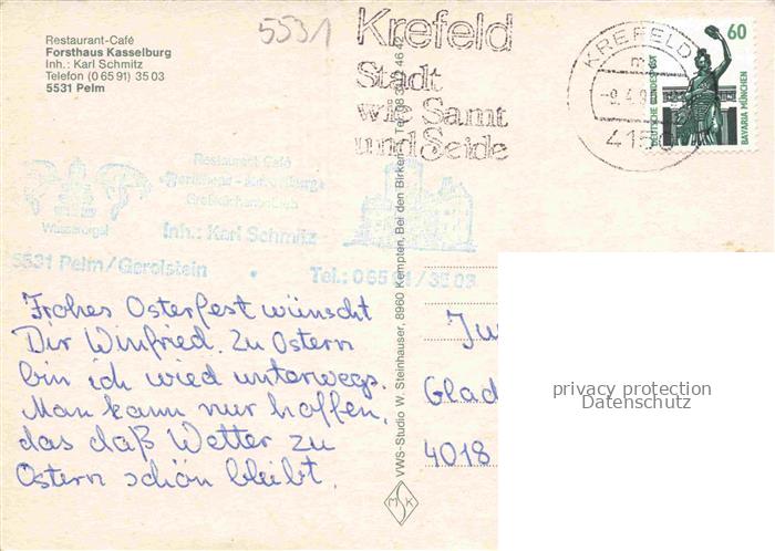 74055202 alte Postkarte Pelm Restaurant Forsthaus Kasselburg Schloss Leuchtfontaene postalisch gelaufen Erhaltung siehe scans [WerneD78] KatCode: 11110007233056