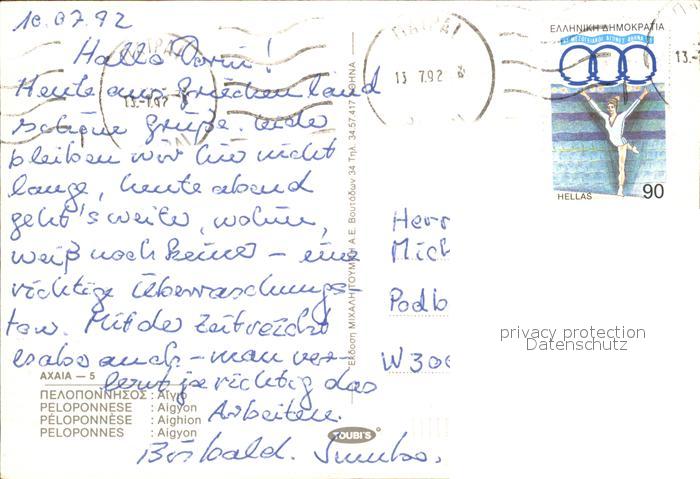 old postcard Peloponnes Aigyon postalisch gelaufen Erhaltung siehe scans