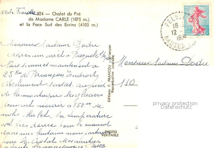 13581224 Pelvoux Chalet du Pre de Madame Carle et la Face Sud des Ecrins KatCode 11170005105101