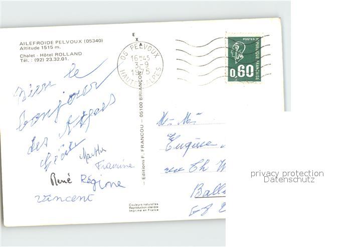 12330333 carte postale Pelvoux Chalet Hotel Rolland postalisch gelaufen Erhaltung siehe scans KatCode: 11170005105101