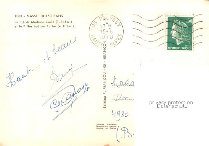 13320621 carte postale Pelvoux Pre de Madame Carle Pilier Sud des Ecrins postalisch gelaufen Erhaltung siehe scans [PaolaD17] KatCode: 11170005105101