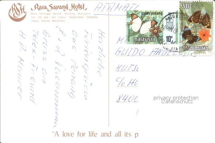 alte Postkarte Penang Rasa Sayang Hotel postalisch gelaufen