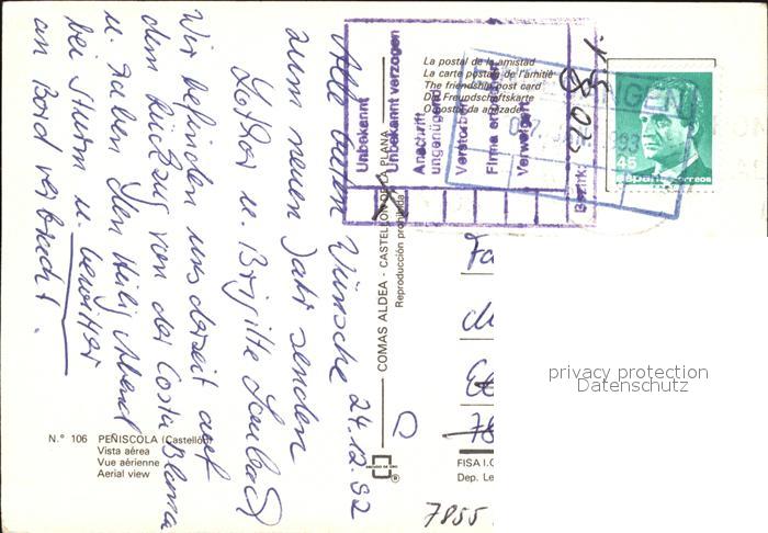 old postcard Peniscola Ciudad en el Mar vista aerea postalisch gelaufen Erhaltung siehe scans [FriedD77]