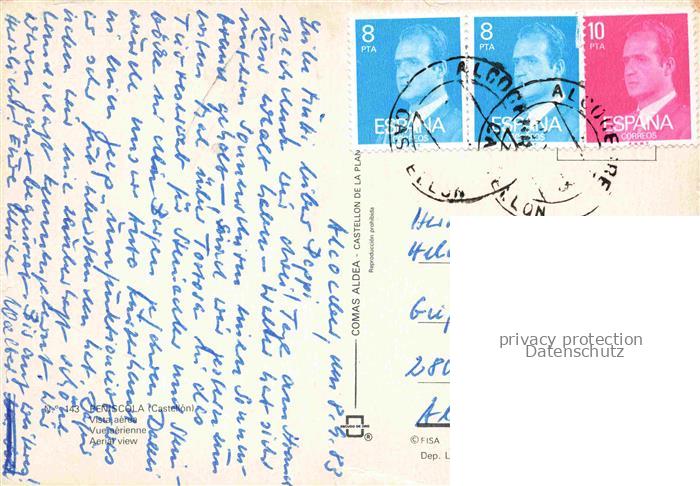 74013500 old postcard Peniscola ES Vista aérea postalisch gelaufen Fliegeraufnahme Erhaltung siehe scans [FriedD77] KatCode: 11510