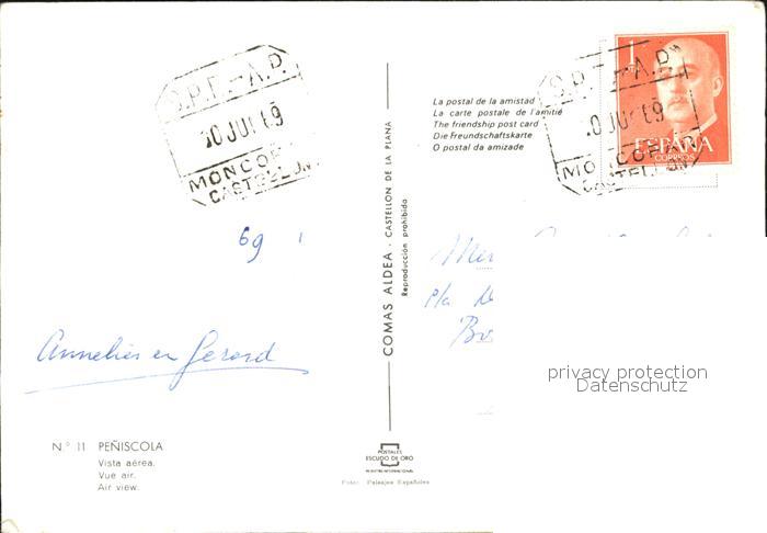 old postcard Peniscola Fliegeraufnahme postalisch gelaufen Erhaltung siehe scans