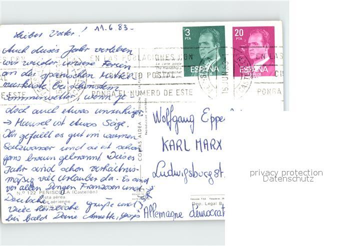 old postcard Peniscola Fliegeraufnahme postalisch gelaufen Erhaltung siehe scans