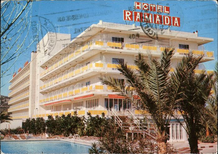 old postcard Peniscola Ramada Hotel Papa Luna Piscina postalisch gelaufen Erhaltung siehe scans