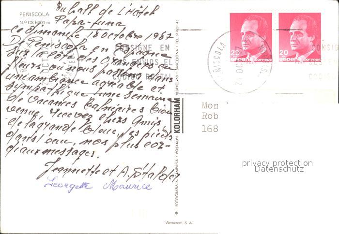 old postcard Peniscola Strand Ortsansicht Sonnenuntergang postalisch gelaufen Erhaltung siehe scans