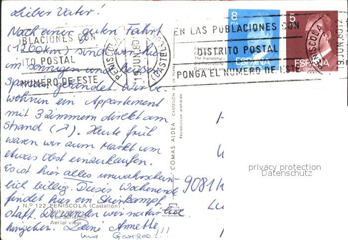 old postcard Peniscola Vista aerea postalisch gelaufen Erhaltung siehe scans