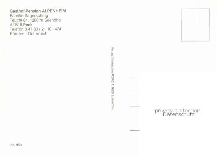 72773799 Penk Kaernten Gasthof Pension Alpenheim postalisch nicht gelaufen Erhaltung siehe scans [AndreD76] KatCode: 11390