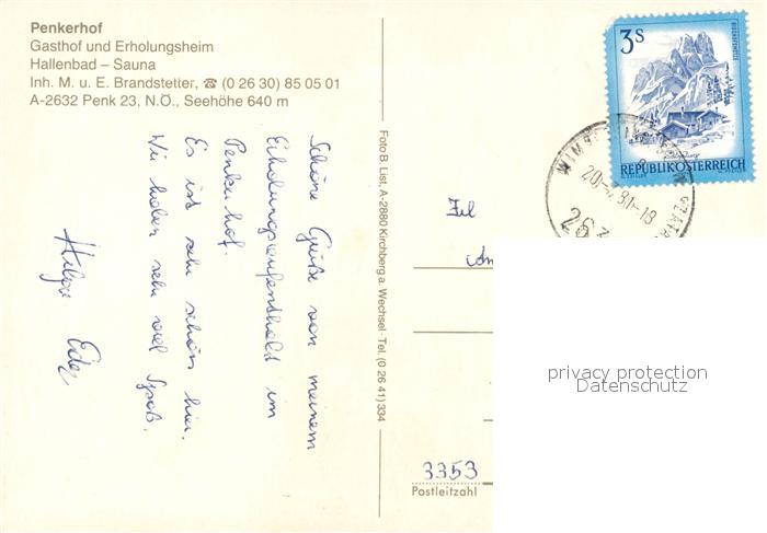 73178321 alte Postkarte Penk Niederoesterreich Penkerhof postalisch gelaufen Erhaltung siehe scans [NatalD47] KatCode: 11390122031811