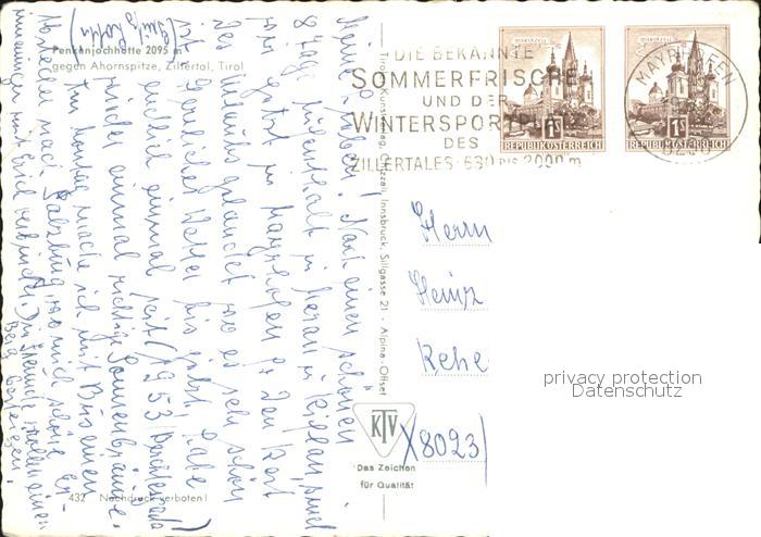 71928615 alte Postkarte Penkenjochhuette Ahornspitze postalisch gelaufen Erhaltung siehe scans KatCode: 11390335070908