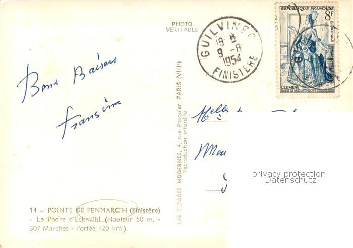 13784511 Penmarch 29 Finistere Le Phare d Eckmuehl postalisch gelaufen Erhaltung siehe scans [FriedD77] carte postale Frie Katcode 11170029429158