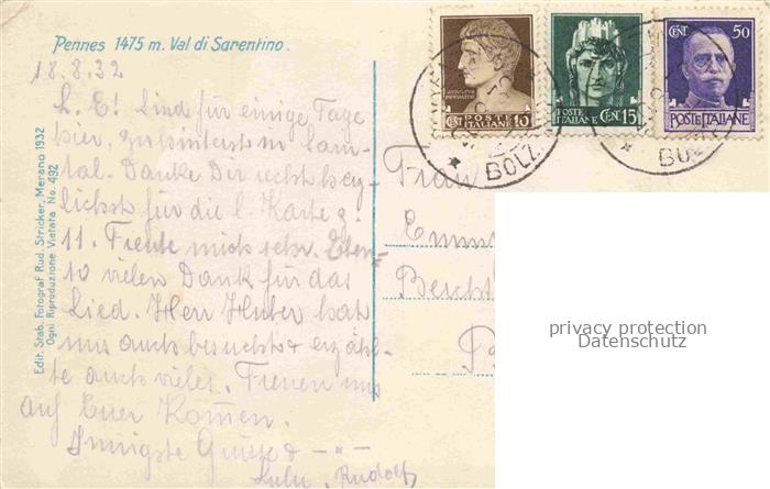 74049486 old postcard Pennes Pens Sarntal Suedtirol IT Panorama Val di Sarentino postalisch gelaufen Erhaltung siehe scans [FriedD77] KatCode: 11240