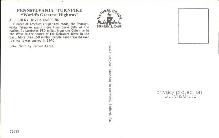 72167264 Pennsylvania Turnpike Allegheny River Crossing Highway postalisch nicht gelaufen Erhaltung siehe scans KatCode: 14140
