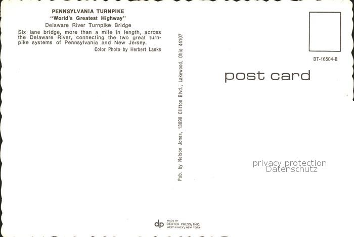 72179191 Pennsylvania Turnpike Delaware River Bridge postalisch nicht gelaufen Erhaltung siehe scans KatCode: 14140